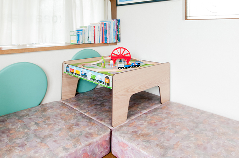 待合室内には、見渡しのいい明るいキッズスペースを設けております。お子様連れの患者様も安心して診療いただけます。