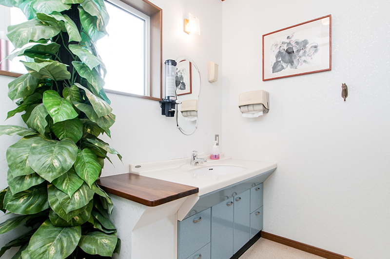 診療前は歯磨きをしてからお願いいたします。診療後の身だしなみはこちらでどうぞ。
